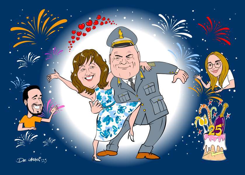 1 ) Bellezza del segno. 2) Pulizia del segno. 3) Velocità nel disegno. (armonia nel colore) sui lavori a colori. Fatto questo avete scelto bene! Se vi buttate sul primo che capita solo per convenienza (magari economica), siete i primi a farci una pessima figura agli occhi di chi ne capisce. Capitano professori di disegno a i vostri eventi che per educazione non dicono nulla ma immaginate se potessero parlare! A volte anche chi non è disegnatore ma ha il gusto del bello capita che interviene, mette in imbarazzo il disegnatore caricaturista e voi. 😉